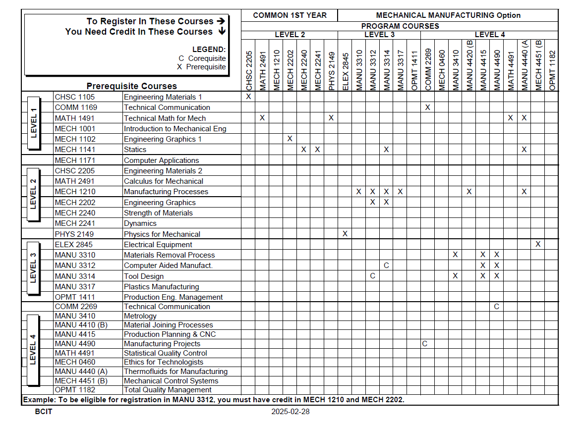 Mechanical Engineering – Prerequisites January 15, 2018 by Mary Woodbury Degree Design Manufacturing Systems
